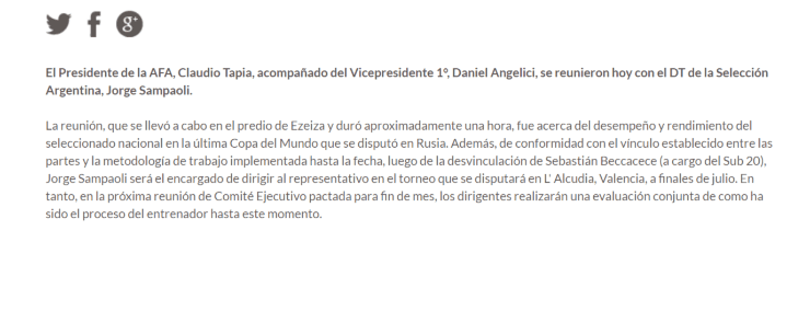 Sin embargo, en el mismo texto, se anuncia una próxima reunión para evaluar el rendimiento del entrenador en la Copa del Mundo y ahí, quizás, ratificar o no la decisión.