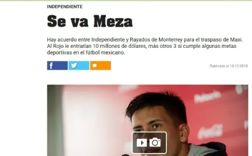 Cabe señalar que Rayados de Monterrey debería desembolsar 16 millones de dólares, pero Independiente posee solamente el 65% del pase. El otro 35% debería dividirse entre Gimnasia y un grupo inversor.