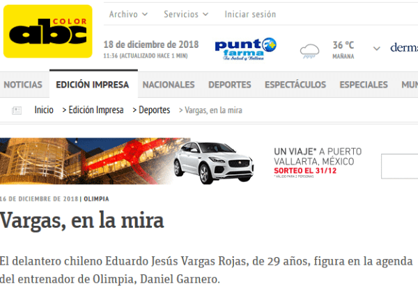 Con los objetivos de quedarse con el campeonato paraguayo y de realizar una actuación por encima de la media de los equipos del país en la Copa Libertadores, la directiva del Decano intentaría fichar a Eduardo Vargas, según el diario ABC.