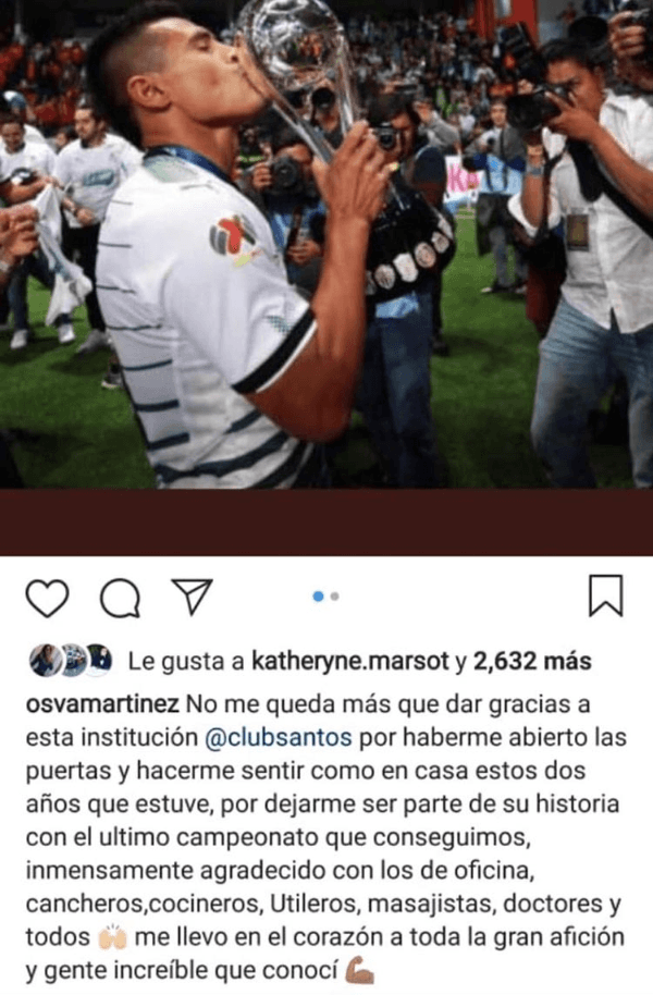 Después de un año irregular, con más buenas que malas, Osvaldo Martínez se marcha de Santos Laguna. El mediocampista paraguayo, ex-América, lo anunció a través de su Instagramoficial.