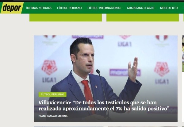“Villaviciencio: “De todos los testiculos que se han realizado aproximadamente el 7% ha salido positivo””, titularon los de Depor cayendo probablemte en un error del corrector. Obviamente, después lo cambiaron. Igual, quedó la captura.