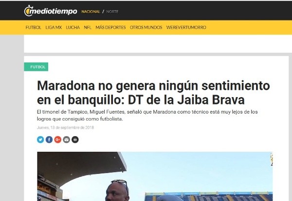 Todos emitieron opinión sobre la llegada de Maradona a Dorados,ylos comentarios fueron muy disimiles.Si bien la mayoría fueron elogios para el ex entrenador de la Selección argentina, quienes lo criticaron lo hicieron con una dureza llamativa. Este último es el caso de Miguel Fuentes.