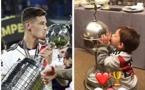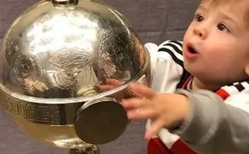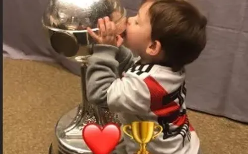 El pequeño fanático del Millonario fue fotografiado por su madre besando el tan deseado trofeo por todos.