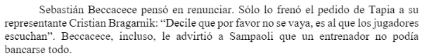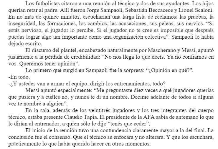 Después, cuando el técnico les preguntó si querían armar el equipo ellos, Messi le respondió: “Me preguntaste diez veces a qué jugadores querías que pusiera y a cuáles no, y nunca te di un nombre. Decime adelante de todos si alguna vez te nombré a alguien”.