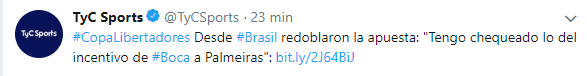 Una controversial noticia fue publicada porCesar Guimaraes, periodista del diario Lance! de Brasil, explicando que Boca había incentivado económicamente a los jugadores del Palmeiras.