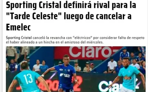 Sporting Cristal confirmó por medio de un comunicado que el choque ante Emelec del próximo domingo quedó cancelado debido a los hechos que se produjeron al final del partido. Por ahora se desconoce el rival a enfrentar en el Día de la Raza.