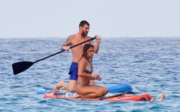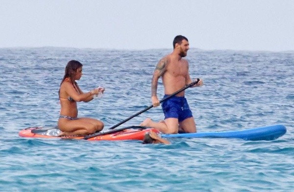 Hoy aparecieron las fotos de Leo y Antonella Roccuzzo, su hermosa pareja, jugando un poquito en el mar.