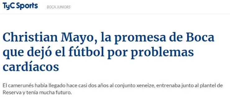 Boca se desayunó una terrible noticia en el inicio de esta semana. Una de sus promesas, el camerunésChristian Mayo, se vio forzado a dejar el fútbol fruto de inconvenientes de salud.
