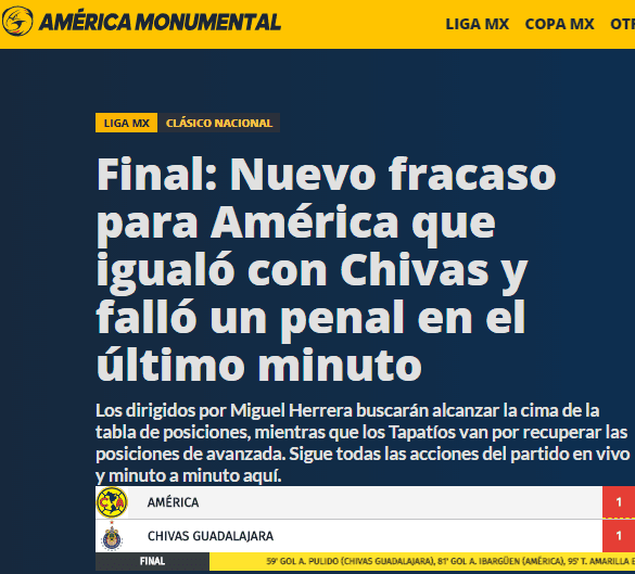 El Rebaño Sagrado comenzó arriba en el marcador gracias al tanto de Alan Pulido, pero sobre el cierre los azulcremasse fueron con todo encima de la valla visitante y lograron el 1-1 gracias al golazo deAndrés Ibargüen.