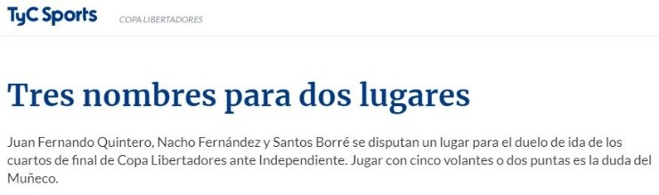 En consecuencia, Riverformaría desde el arranque con Franco Armani; Gonzao Montiel, Jonatan Maidana, Javier Pinola, Milton Casco; Juan Fernando Quintero, Ignacio Fernández, Leonardo Ponzio, Exequiel Palacios, Gonzalo Martínez; Lucas Pratto.