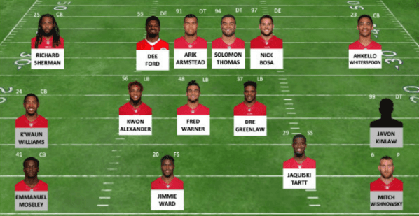 Robert Saleh continúa como el coordinador defensivo y con él un grupo de jugadores que conocen perfectamente lo que quieren. La baja rutilante en el esquema es la partida deDeForestBuckner, pero no hay que ser dramáticos ya que se cuenta con pilares como lo sonArikArmstead, Dee Ford y el novato defensivo del año, Nick Bosa.