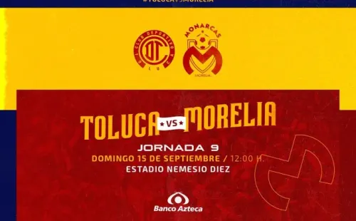 El partido de Toluca vs. Morelia por la jornada 9 de la Liga MX será este domingo 15 de septiembre en el Estadio Nemesio Díez.