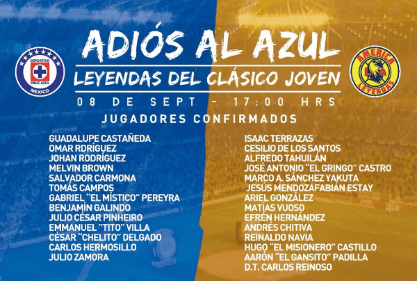 Cruz Azul y América se enfrentarán en un partido especialporla despedida del Estadio Azul,donde participaránjugadores históricos de ambos conjuntos.