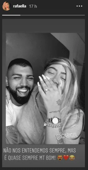 A través de su cuenta de Instagram, confirmando la noticia, el goleador del Brasileirão adjuntó una foto con su media naranja y redactó: “Gracias por la pequeña sorpresa … ¡Y también por todos los mensajes de cariño!”.