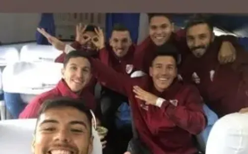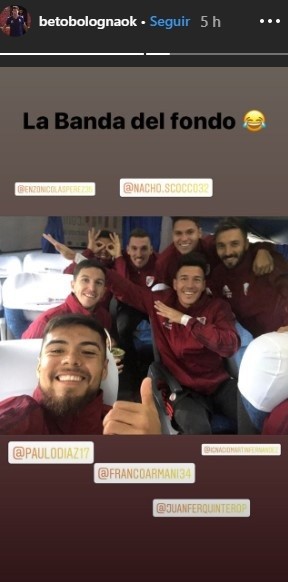 En una historia de Instagram, metió un fotón junto a Nacho Fernández, Scocco, Enzo Pérez, Paulo Díaz, Juanfer Quintero y Franco Armani.
