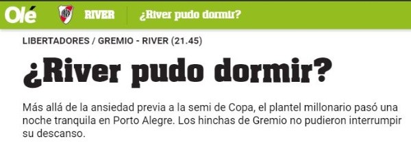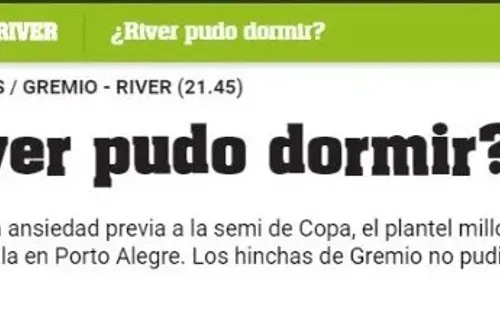 Según detalló Olé, el plantel de Riverpudo tener un descanso grato de cara al cotejo trascendental que se avecina contra Gremio.