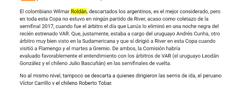 Roldán podrá excusarse con que, en aquel momento, el VAR se encontraba en período de prueba y que su arbitraje aquella noche se ciñó estrictamente al reglamento, pero en River ya temen por su designación para el partido más importante de la historia.