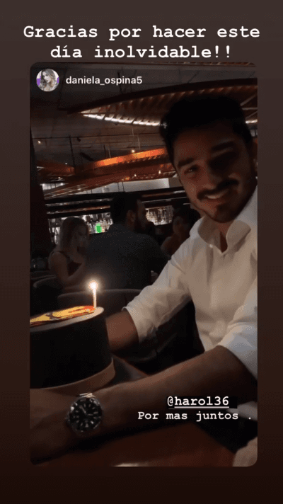 Este jueves, Harold está de cumpleaños y en la noche anterior Daniela lo invitó a una cena romántica, en la cual hubo tiempo para partir un pequeño ponqué que compartieron los dos a solas.