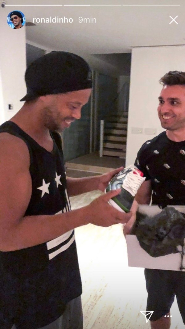 El regalo emocionó a Ronaldinho, quien además recibió unos botines especiales de color azul brillante y con el número 10.