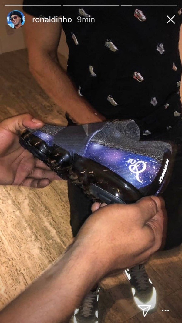 Dinho mostró en su cuenta de Instagram que Nike le regaló unas zapatillas especiales, una de ellas tiene su cara cuando era niño y otra con su imagen como jugador profesional.