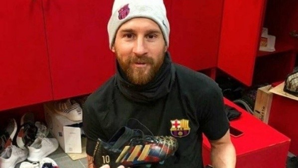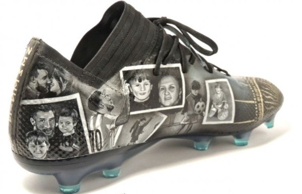 El regalo a Ronaldinhorecuerda a lso botines que recibió Messi, con fotos de sus familiares y confeccionados por una artista de Paraguay.