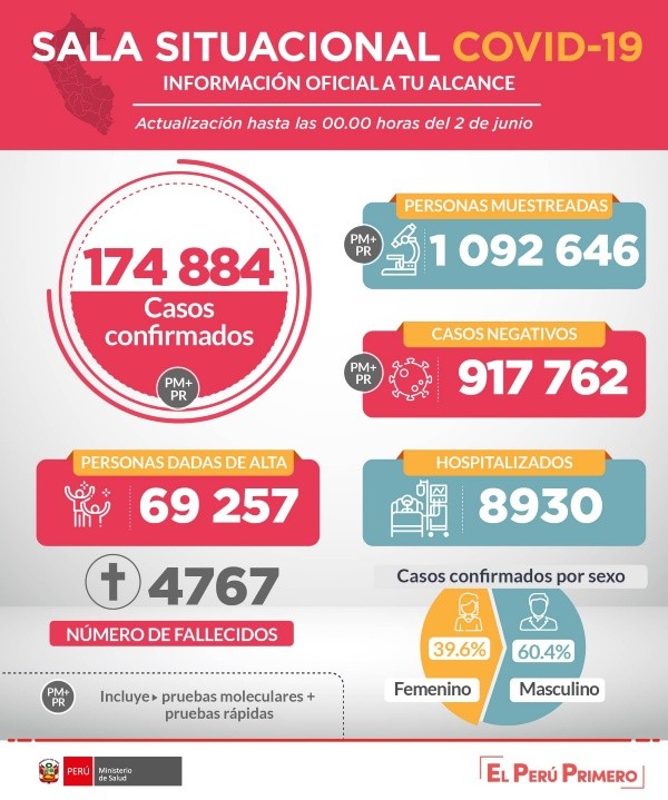 Este martes, volvieron a actualizar los datos. Lo hizo, como siempre, el Ministerio de Salud ahora cerca a las 9 de la noche.