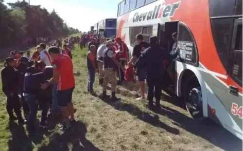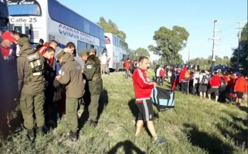 Un grupo de hinchas de Riverque viajaban desde Buenos Aires hacia Mendoza fueron detenidos por la policía, que secuestró cuchillos y hachas, según informó El Diario de San Rafael.