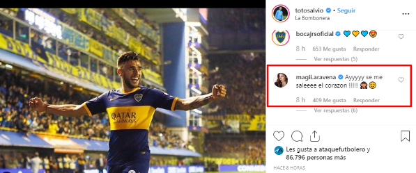 La morocha le puso: “Ayyyyy se me saleeee el corazon !!!!!”. Junto a dos emojis. Además, subió muchas historias durante el duelo siguiéndolo desde La Bombonera.