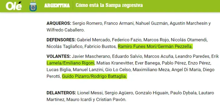 Cabe mencionar y destacar que el entrenador esperará hasta último momento por las evoluciones de las respectivas lesiones de Sergio Agüero, Lucas Biglia y Sergio Romero.
