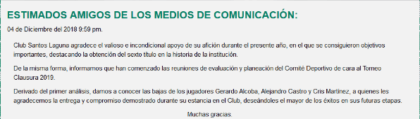 Por eso, tanto la directiva como el cuerpo técnico y los jugadores de Santos Laguna ya tratan de pasar de página y enfocarse en lo que será una temporada muy dura, con copa, liga y Concachampions.