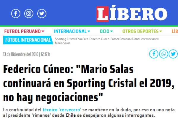 Según detalló Líbero, el presidente de la institución peruanase refirió al futuro del entrenador del primer equipo, quien sonaba para irse a Chile.