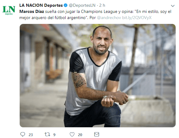 Hecha la división entre él y el resto, Marcos Díaz señaló que es Guido Herrera, de Talleres, el arquero que más le gusta, aunque reconoció que“Armani y Arias están en buen nivel también”.