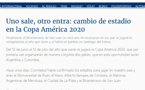Pese a que ya está todo arreglado para la competición, acaba de haber un cambio de último momento. La CONMEBOL agregó una sede más en Argentina, la cual albergará un partido.