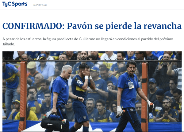 Segúndetalló TyC Sports, finalmente Cristian Pavón no podrá estar presente para la revancha en El Monumental. El volante, pese a los esfuerzos empleados, no podrá estar a disposición del técnico para enfrentar a Riverpor la final de la Copa Libertadores.