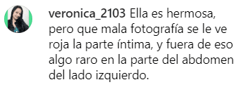 Primero, le señalaron que tenía un error de Photoshop y tenía algo raro cerca a su zona íntima. “Ella es hermosa, pero que mala fotografía se le ve roja la parte íntima, y fuera de eso algo raro en la parte del abdomen del lado izquierdo”.