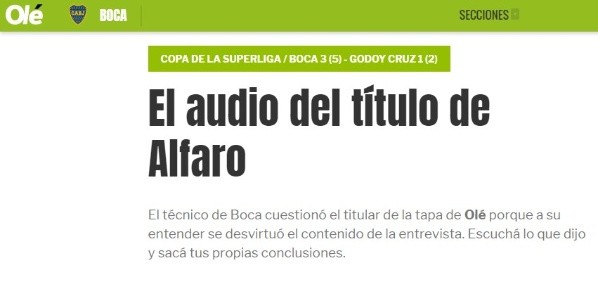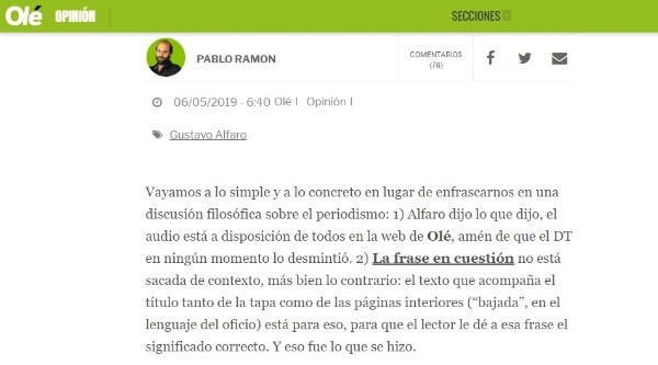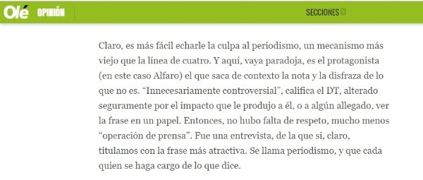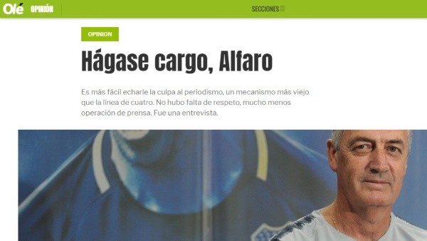 +La respuesta completa de Olé a Alfaro:
