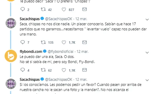Las respuestas al posteo del equipo del fútbol no tardaron en llegar (la gran mayoría justamente arrobando a Flybondi para que pueda presenciar la traición que acababa de ocurrir). Claro está, que varios usuarios arremetieron contra la institución.