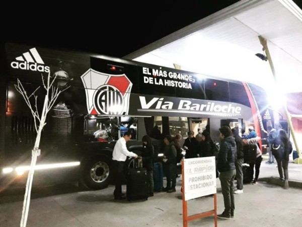 De la nada, llega el micro que transporta día a día al plantel y cuerpo técnico de River. Exacto, el mismo que usa Gallardo, Armani, Enzo Pérez, etc.