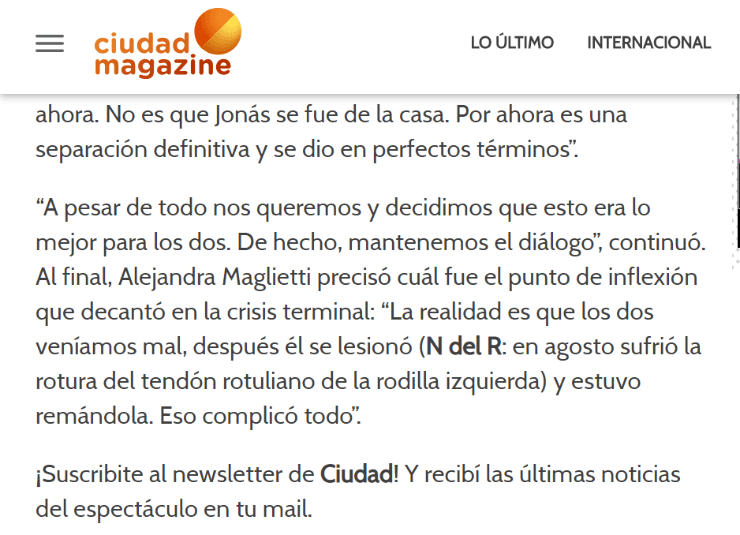 Estamos llorando: con mucho penar, debemos anunciarles que Alejandra Maglietti y Jonás Gutiérrez decidieron ponerle fin a su relación.
