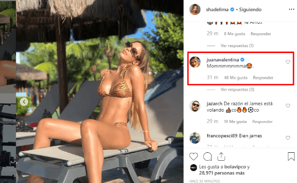 La hermana de James, Juana Valentina, le comentó la imagen con un “Mommmmmmma” y un emoji enamorada.