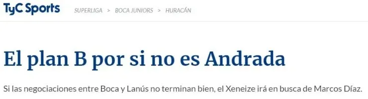 Según detalló TyC Sports, en caso que las negociaciones entre el Xeneize y el Granate se vean truncadas, recordando que se habría llegado a un acuerdo para que Andrada parta al club de Guillermo Barros Schelotto, el elenco presidido por Daniel Angelicitendría todo listo y planificado para ir en busca del arquero del Globo.