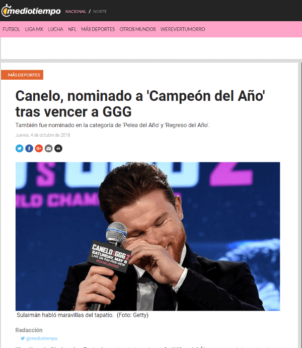 En la edición número 56 de la convención de la organización, en Ucrania, se dieron a conocer las nominaciones en el presente año. Según lo que publicó Mediotiempo, el pugilista mexicano aparece en las de “Campeón del año”, “Pelea del año” y “Regreso del año”.