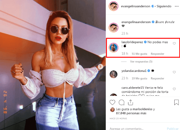 “No podés más”, le escribió la modelo haciendo referencia a la figura de la rubia, quien fue bailarina en Pasión de Sábado.