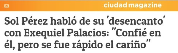 En un abrir y cerrar de ojos se terminó el romance entreSol PérezyExequielPalacios, el joven jugador del River de MarceloGallardo.