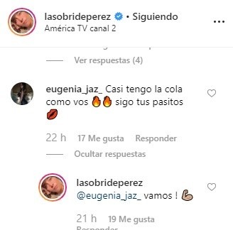 Motivando a una de sus tantas fans, tiró: “¡Vamos!”, con un emoji de un brazo haciendo fuerza.