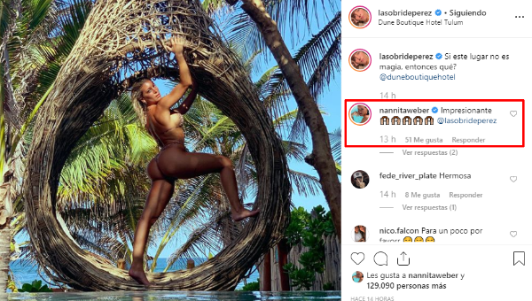 Natalie Weber, la mujer del delantero Mauro Zárate, vio la foto y no se resistió a dejarle un comentario.