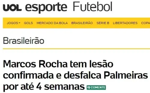 Según ha informóUOL Esporte,Marcos Rocha, defensor y uno de los capitanes del conjunto, se desgarró y tendrá para un mes de recuperación.