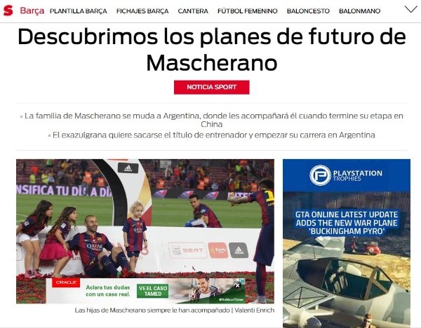 Javier Mascherano volverá a la Argentina para hacer el curso de director técnico y tiene pretensiones de dirigir en el fútbol argentino, según publicó el diario Sport de Barcelona.