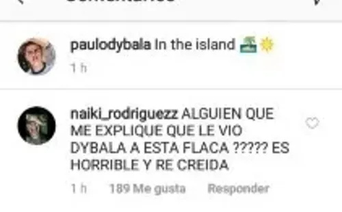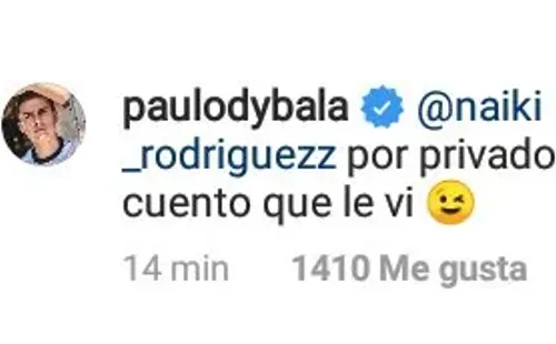 Claro, eso debe haber imaginadoel usuario ‘naiki_rodriguezz’, que en Instagram se manifestó sobre una foto que subió Paulo Dybala.