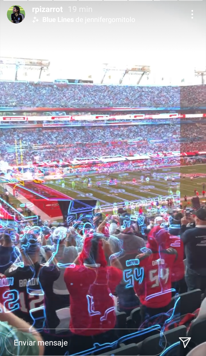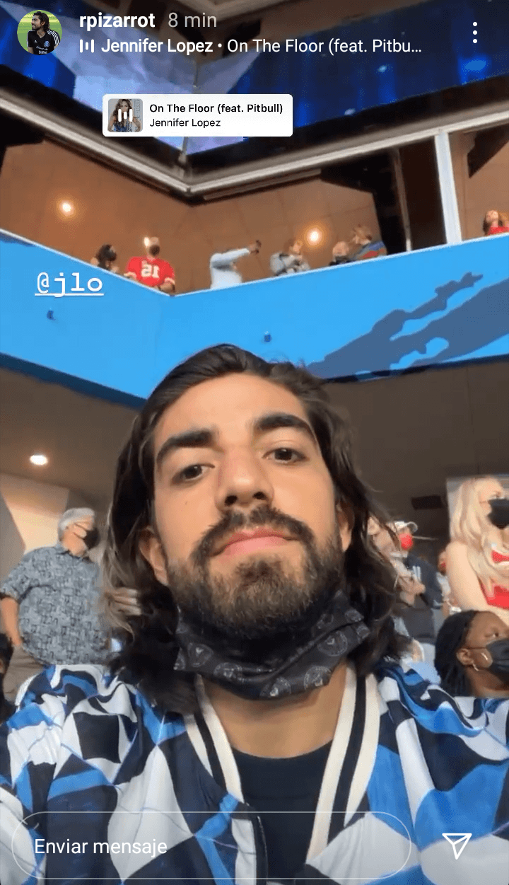 En su cuenta de Instagram, Pizarro compartió distintas stories en el inmueble con un jersey de Tampa. También se mostró juntoa su colega futbolístico y también en la grada muycerca de Jeniffer López, quien se encontraba en su palco.